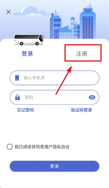 4、输入手机号,验证码,密码,勾选我已阅读并同意用户隐私协议,点击注册即可