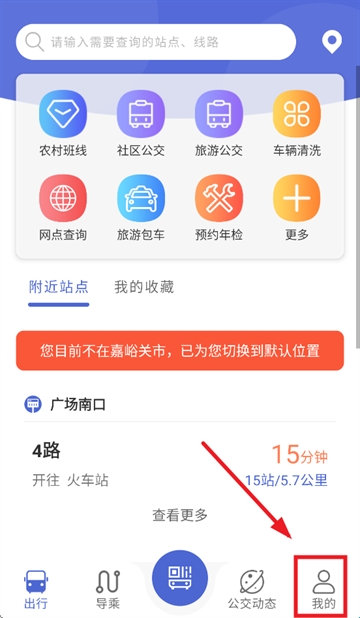 1、下载安装并打开嘉峪关出行app,进入后点击我的