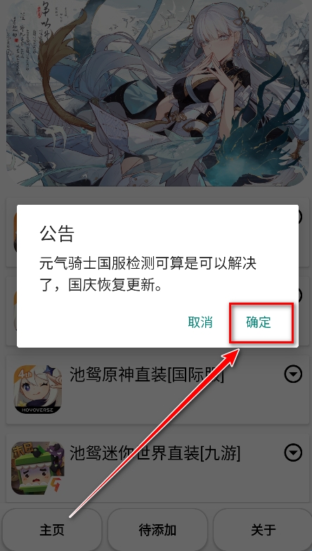 1、下载安装并打开最新版本的池鸳启动插件,点击确定。