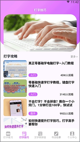 4、用户既可以练习手机输入法,也可以通过接入蓝牙键盘,练习物理键盘输入法,后续我们会陆续加入输入法学习提高资料。