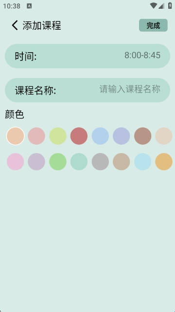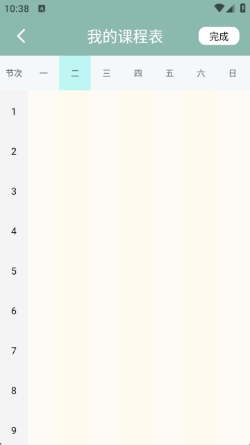 6、编辑课程表:在课程表编辑界面,可添加课程(点击空白表格区域),长按可再次编辑,设置完成后点击“完成”。