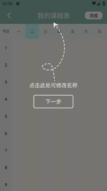 5、创建课程表:在“我的课程表”界面,点击可修改课程表名称,点击“下一步”继续设置。