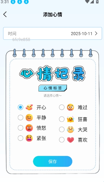 5、这样就可以选择时间和勾选心情标签,点击“保存”按钮来一键保存下来。