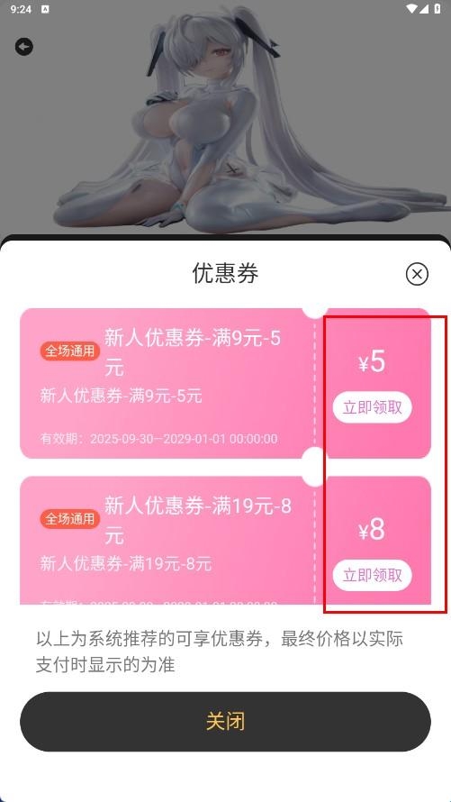 4、在优惠券界面,可领取新人优惠券,享受购物优惠。