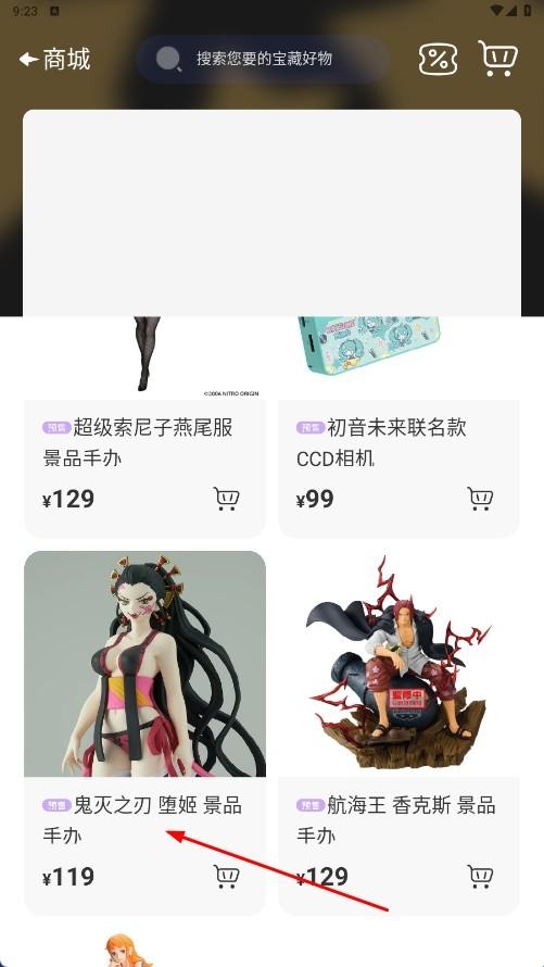 2、在商城浏览商品,如【鬼灭之刃-堕姬-景品手办】,点击可查看商品详细信息。
