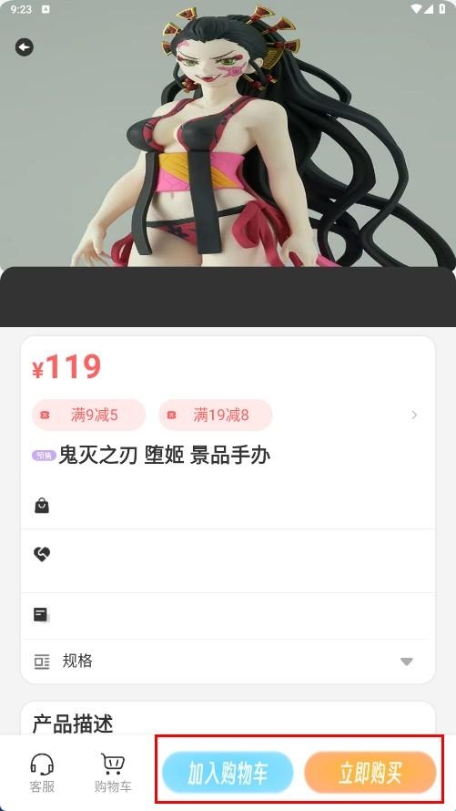 3、在商品详情页,点击【加入购物车】或【立即购买】,便捷购买心仪潮玩手办。