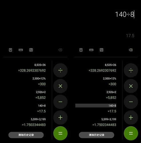 点击你就可以看到你的使用历史,点击记录还会直接显示在数字显示区域,方便你重新计算。