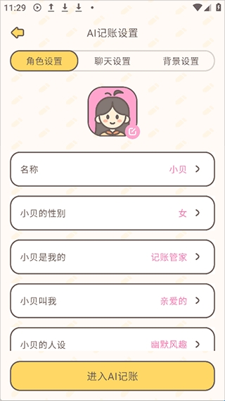 4、其中AI记账可以设置AI角色来充当你的记账管家