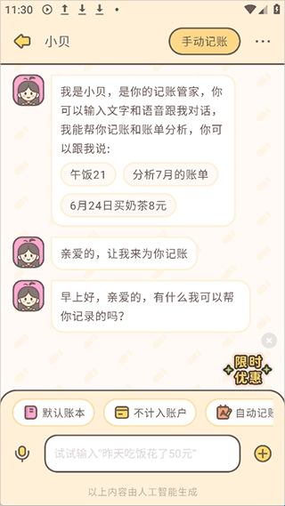 虚拟人物,聊天记账,自动分类,一秒完成记录。