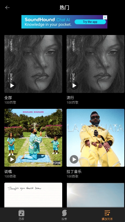 5、Apple Music会员可以在Apple Music中自动将历史记录保存到SoundHound∞播放列表!此外,还可以一边在SoundHound∞中播放完整歌曲,一边跟着LiveLyrics唱