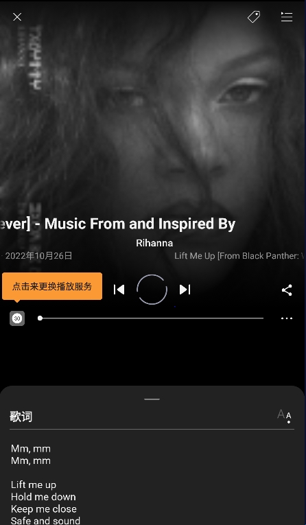 6、与歌词互动以导览歌曲 -跳到副歌部分、向前跳进,或是点击歌词从头开始重播。