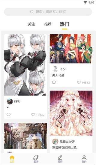 3、画师栏可以查询和发现你喜欢的画师;