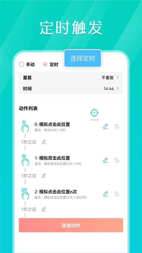 2、支持用户连点加速功能,同时设定好之后可以自动执行,还可以随时记录任意位置的点击或滑动操作。