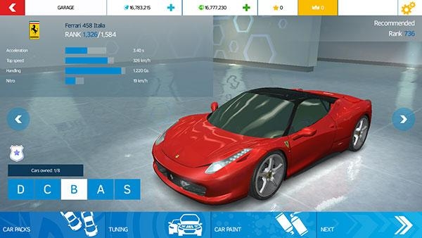 狂野飙车氮气加速是一款非常好玩刺激的赛车竞速类游戏,在玩法上采用了和《狂野飙车8》同样的操作模式,使用重力感应转向,点击屏幕左边可以进行刹车漂移,点击右边则可以氮气加速。游戏相比《狂野飙车8》要小得多,但这不代表游戏有着很严重的缩水,游戏界面采用蓝白色调则让游戏显得更为简洁,十分符合精致的风格,模式也很齐全,有快速比赛、多人模式以及生涯模式这三个模式,而且该游戏还收录了14条赛道以及数10辆赛车。狂野飙车以氮气作为卖点,毕竟现在世界级赛车都采用液态氮氧化物系统来瞬间提高发动机功率,对赛车类游戏感兴趣的玩家千万不要错过。