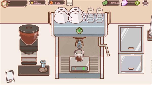 可口的咖啡美味的咖啡可以让你体验经营的乐趣,游戏中玩家将拥有一家咖啡店,需要为顾客制作不同口味的咖啡,这有丰富的原材料和工具,你只需要按照对应的流程即可。