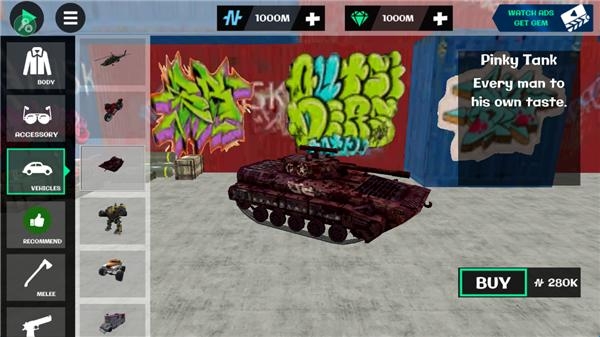 2、进入地图点击右上角的商店,选择车辆中的坦克点击BUY购买,再点击ORDERDELIVERY;
