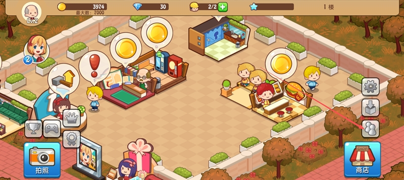 2、除此之外,要设法吸引更多可爱的顾客,举行大热卖,疯狂赚取金币。