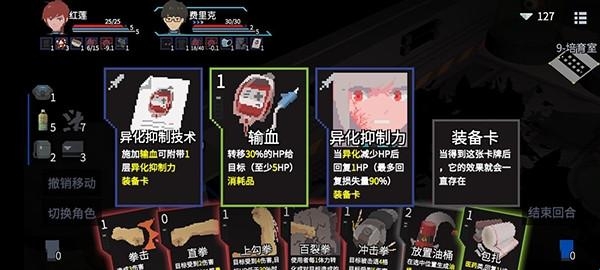 1、施加输血可附带1层异化抑制力,玩家可让工具人使用【输血】这个消耗品卡牌对辛西娅进行输血并附加异化抑制力。