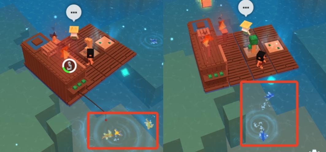 5、点击鱼群钓鱼可以获得少量的钻石,要钓黄色的鱼才有钻石,蓝色的鱼只能获得木材。