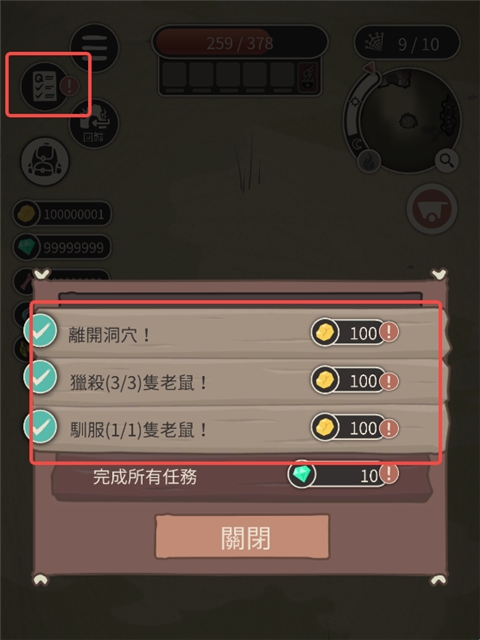 6、点击左上角任务图标即可查看当前的任务以及进度。