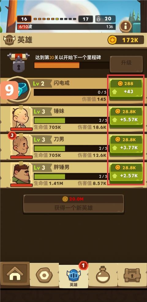 1、提升各位英雄的等级,不仅可以增大生命值还可以增加伤害值。
