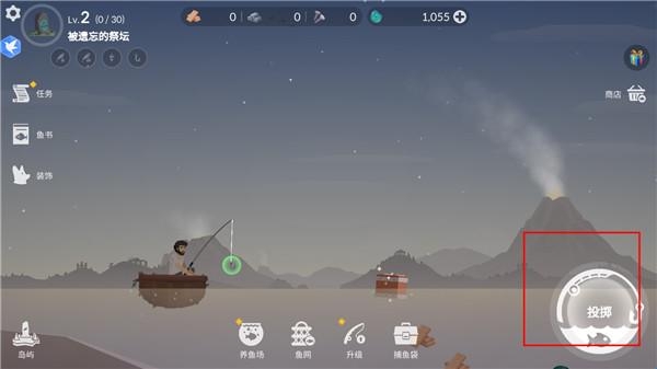 3、游戏的下方有养鱼池、鱼网、升级鱼竿、还有捕鱼袋,你可以选择自己想要选择的物品来捕鱼