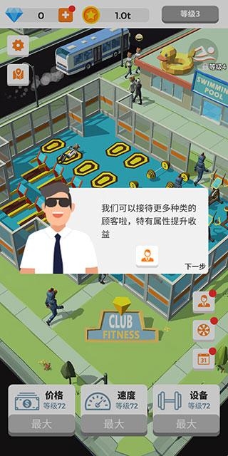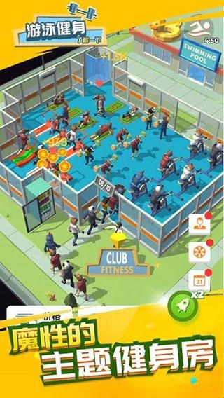游泳健身了解一下是一款模拟经营运动类手游,在这款游戏中玩家将扮演一家健身房的老板,玩家要不断为健身房更新健身设备以及装修店面来吸引客户,从而使得健身房的名声越来越响亮。
