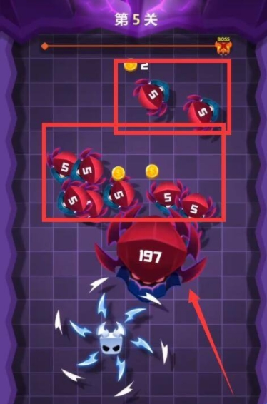 5、第5关攻击BOSS它会分裂出小怪物,所以我们要优先将BOSS击杀,不要管小怪物;