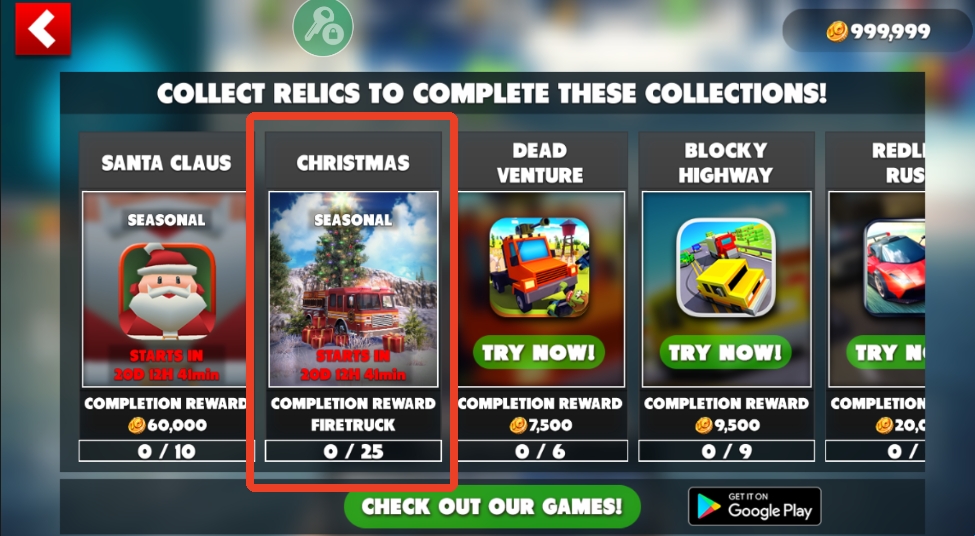 2、完成季节性任务或者参加限时活动,比如这个消防车,在圣诞节完成相应的任务可以解锁。