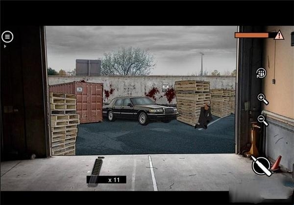 击杀第二个敌人之后,其身体会砸在轿车的方向盘上,喇叭声会一直响个不停。这个时候第三个敌人出现,玩家应迅速将准星移动到左侧靠墙的位置上,在敌人转过来的瞬间将其击杀。否则一旦让他转过来发现同伴尸体,关卡即以失败告终。不清楚具体流程的小伙伴们可以参考下图小编给出的图示照片。