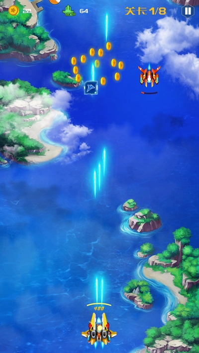 1、消灭敌人就能够随机掉落各种道具,拾取道具之后可以改变战机的战斗形态;