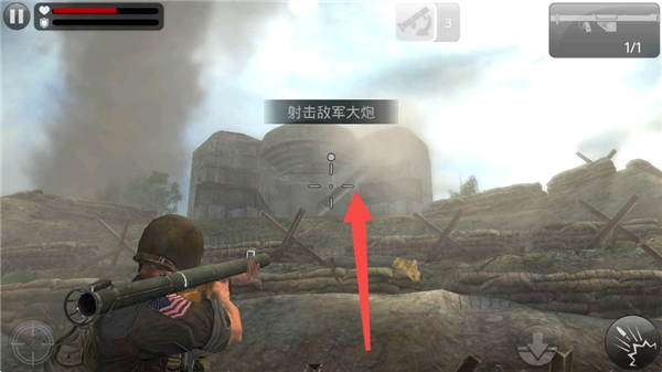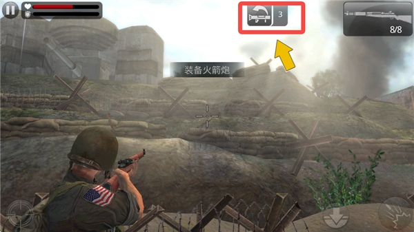 7、来到敌人大炮附近,我们需要装备火箭炮来摧毁敌人的大炮。