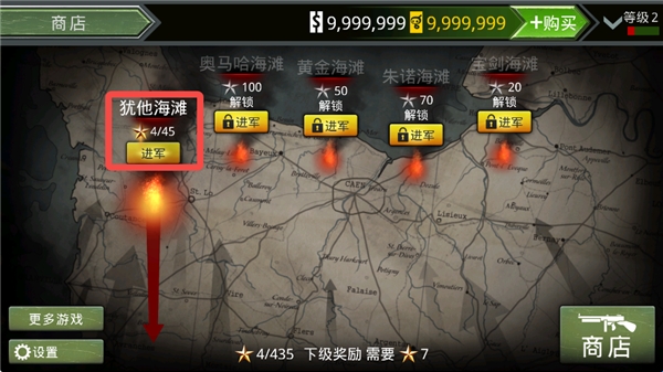 1、进入火线指令诺曼底游戏,选择关卡开始战斗。