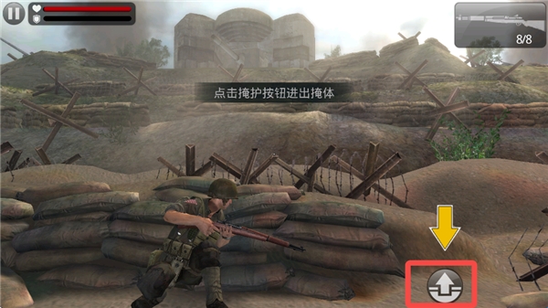 2、点击箭头按钮可进、出掩体。