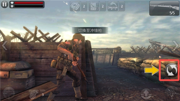 6、这里有机关枪,我们可以操纵它射击前方的敌人。
