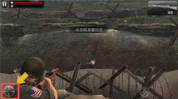 4、发现敌人,点击瞄准器瞄准敌人,然后点击射击按钮射杀敌人。