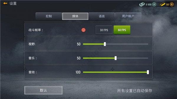 2、在“设置”-“控制”中可以对界面、缩放模式、瞄准、射击等进行设置;