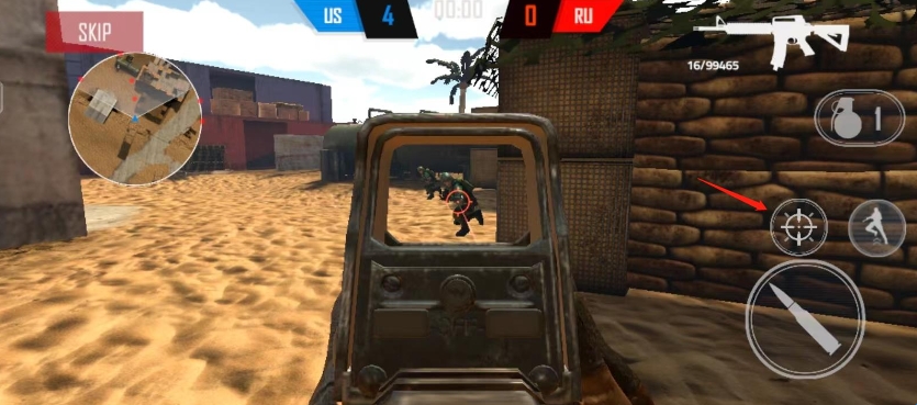 4、当遇到敌人的时候,我们可以开镜瞄准敌人,然后进行射击;