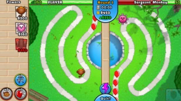 1、猴子:猴子就好比其他塔防游戏中的防御塔。这里有多种类型的飞镖猴、回旋镖猴、大炮、图钉塔、冰猴等等。