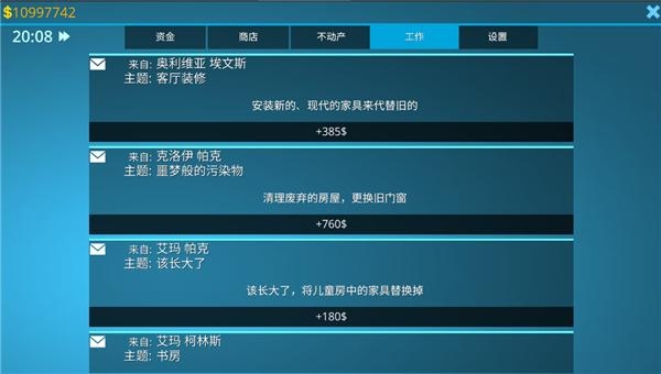 8、在工作板块中,拥有着大量的实际订单,附带详细的设计需要,你需要根据顾客的需求设计出合理的房间。
