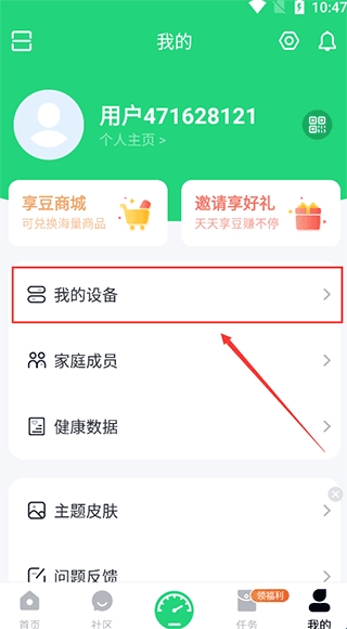 1、首先我们安装下载好app,然后我们进去到主页面需要账号登录,进入后我们点击右下角的我的,里面有个我的设备。