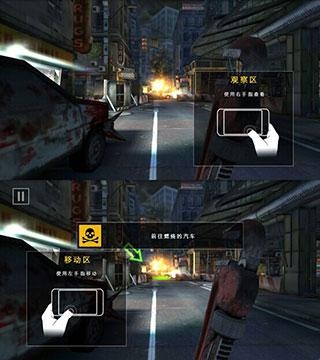 左半边屏幕区域是人物的移动区域,右半边屏幕是人物的视角观察区。(比死亡扳机1代灵敏度高多了)。