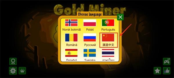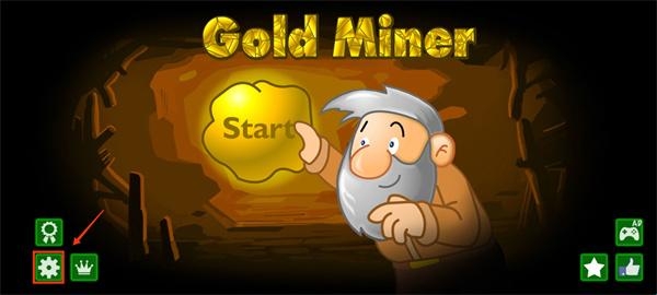 1、下载进入黄金矿工手机小游戏,点击界面左下角的设置按钮;
