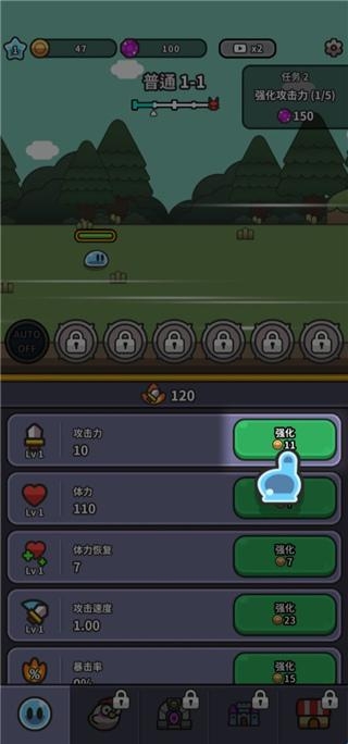 史莱姆大冒险是一款放置类角色冒险游戏,画面采用可爱的萌系画风,玩法以放置养成为主。玩家游玩过程中无需控制史莱姆即可自动攻击,真正的做到了解放玩家双手的目的,让玩家可以轻松实现游戏生活两不误的目标。游戏玩起来起来也是十分简单,仅需在有空时点点下方的升级按钮,来提升史莱姆的数值,完成系统颁发的任务即可,而完成任务获取的资源还可用于抽取各种强力装备以及宠物,帮助玩家更加轻松的通关。