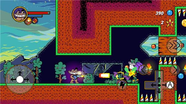 5、四处跳跃,探索疯狂的关卡,射击并躲避敌人。