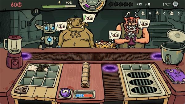 1、接待源源不断的哥布林顾客,根据它们的订单要求,快速准确地制作并奉上寿司。
