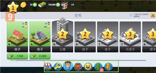 1、进入城市岛屿6中,点击左下角房子图标。