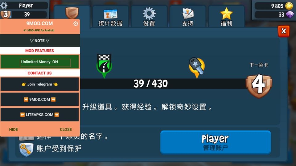 1、进入游戏点击左上角的弹窗将Unlimited Money功能开启,默认是OFF开启是ON;