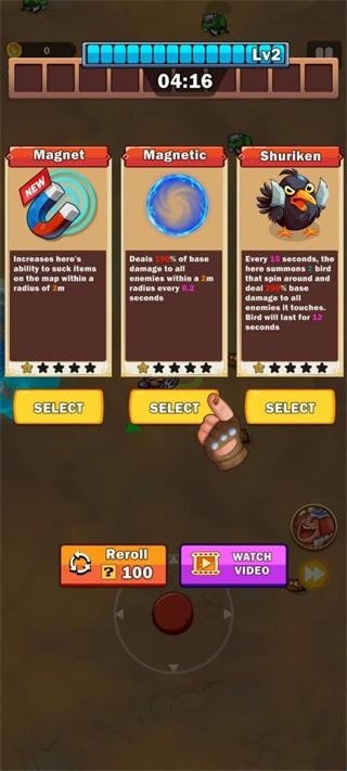 4、最后玩家击杀到一定的程度后将可以获取到额外的辅助技能,三种不同类型的技能来让玩家进行选择。