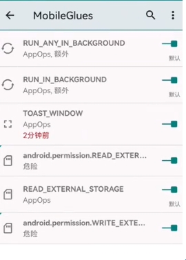 6、选择MobileGlues进入权限设置界面完成配